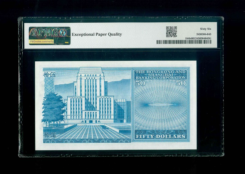 1982 香港上海匯豐銀行$50 PMG 66 EPQ 編號: A/5 516105(頂級雪白)