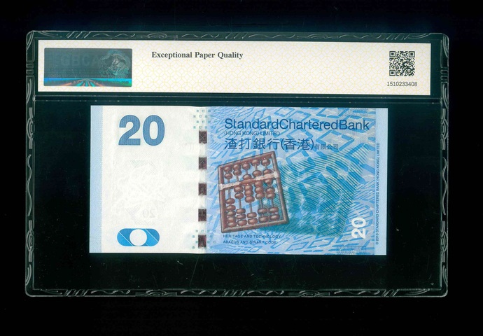 2010 香港渣打銀行 $20 GBCA 66 EPQ 編號:AG568888(獅子號,頂級雪白)