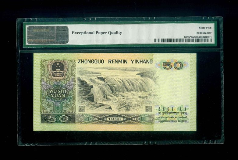 1990 中國人民銀行 $50 PMG 65 EPQ 編號:ZF00489425(補版系列,頂級雪白)