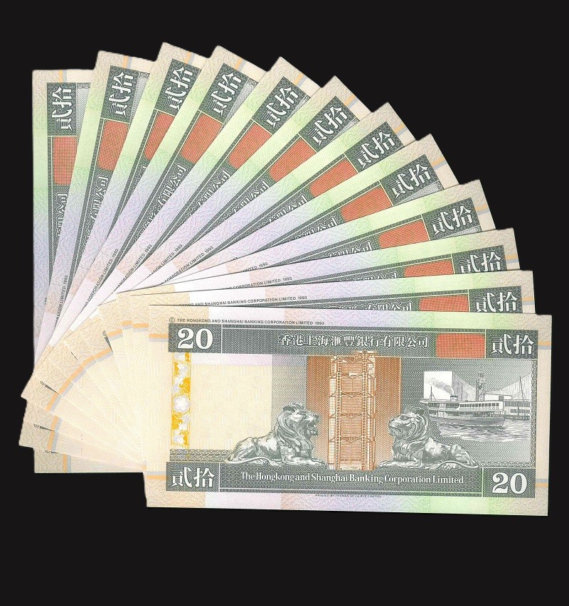 1995 香港上海滙豐銀行 $20 UNC 編號:FJ747503-14(共12張,連號)