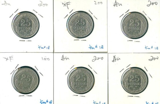 1909D-1910A 德國 (Empire) 25 Pfennig XF/AU 編號:NIL(共6枚)