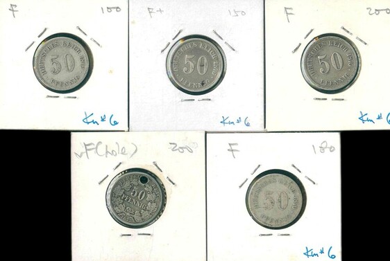 1875F-1877B 德國 (Empire) 50 Pfennig 早期 (Hole) F/VF 編號:NIL(共5枚)