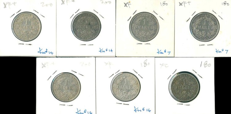 1875A-1907J 德國 (Empire) Mark (少有年份) XF/XF+ 編號:NIL(共7枚)
