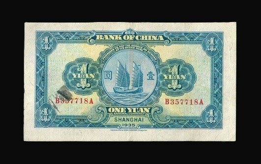 1935 上海中國銀行 壹圓 VF 編號:B357718A
