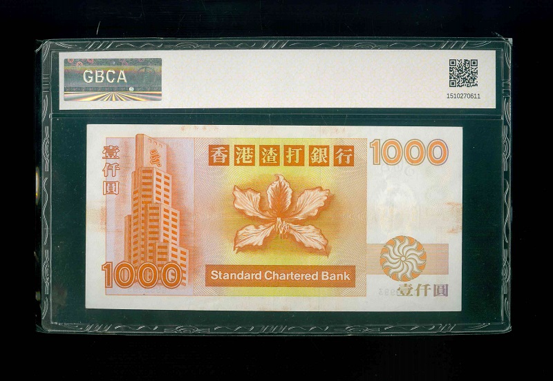 1994 香港渣打銀行 $1000 GBCA 50 編號:G999993