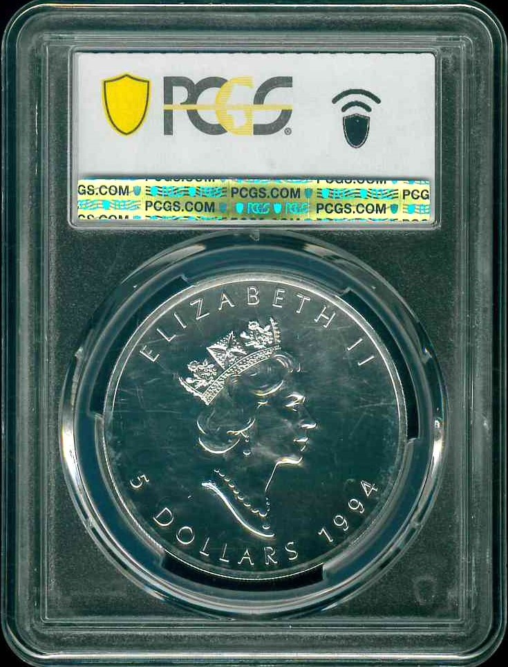 1994 加拿大楓葉銀幣 $5 (1oz 9999 Silver) PCGS MS68 編號:49144880
