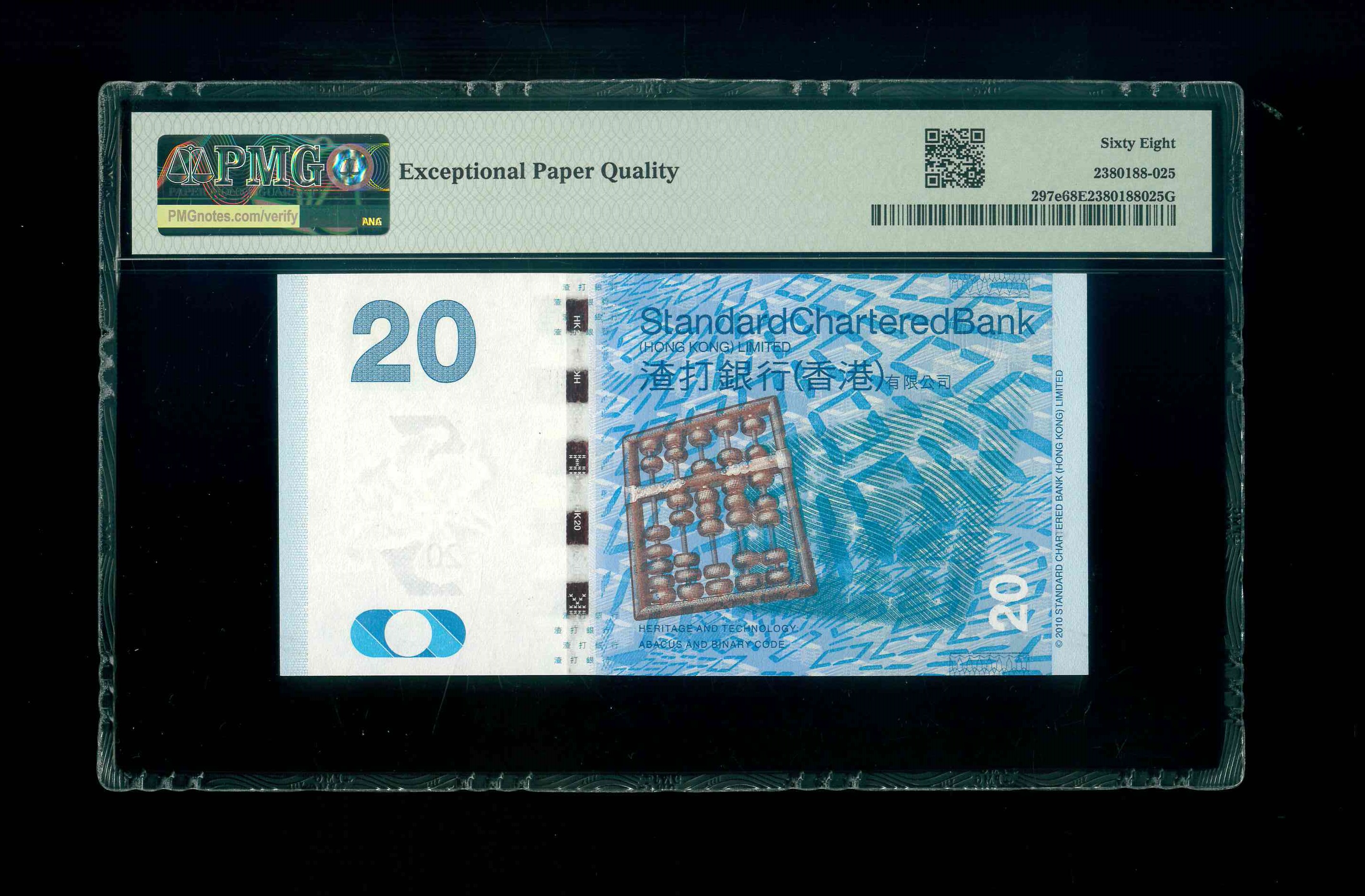 2016 香港渣打銀行 $20 PMG 68 EPQ 編號:ER223333(獅子三對子,頂級雪白)