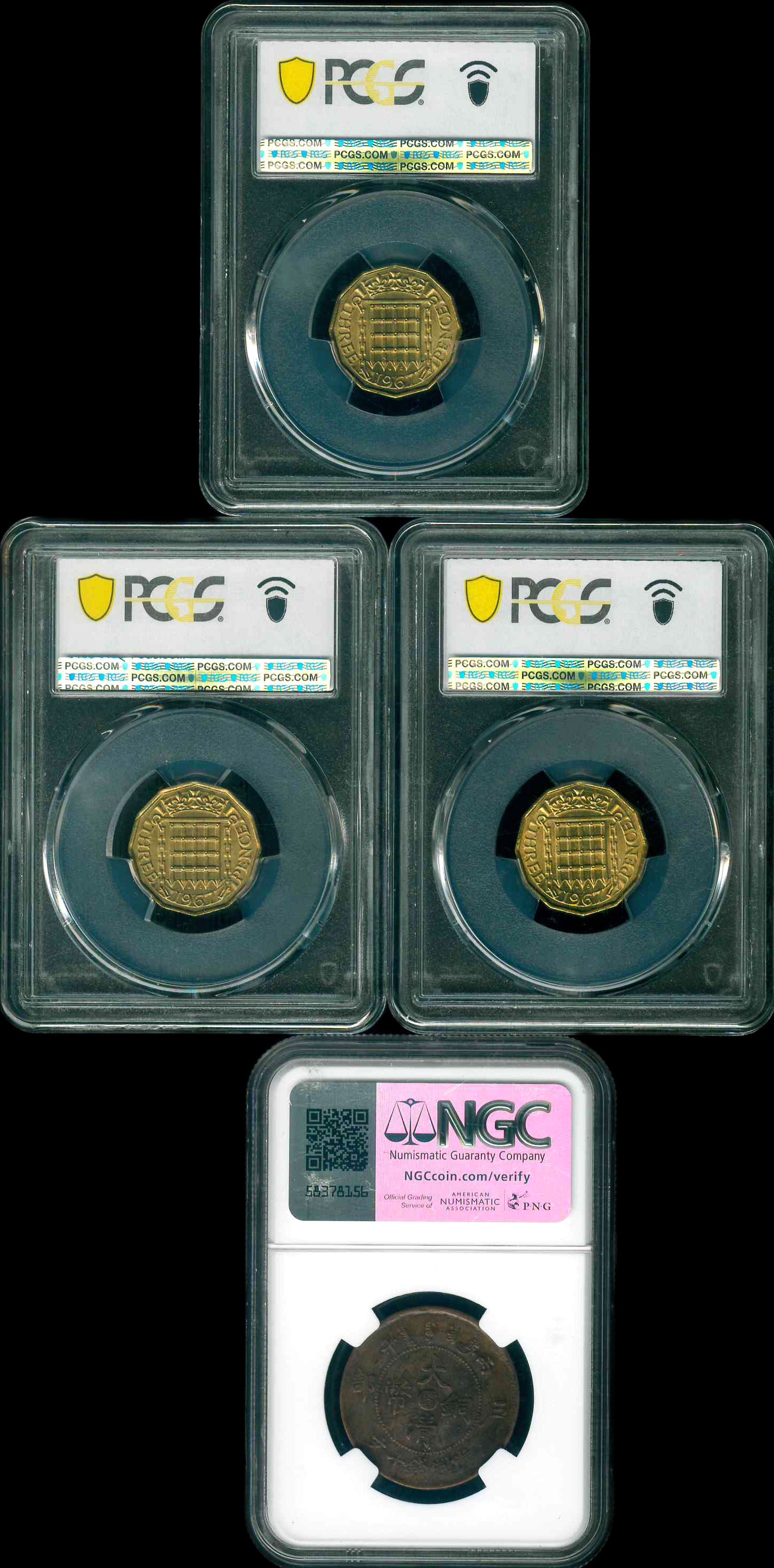 1906/1967 中國戶部大清銅幣當制錢十文/ 英國 3Dx3 NGC VF Details/ PCGS MS64 編號:8192942-009…(共4枚)