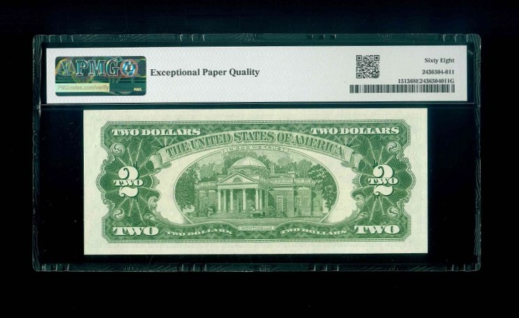 1963 美國 $2 (第三任總統肖像) PMG 68 EPQ 編號:A05255217A(AA版,頂級雪白)