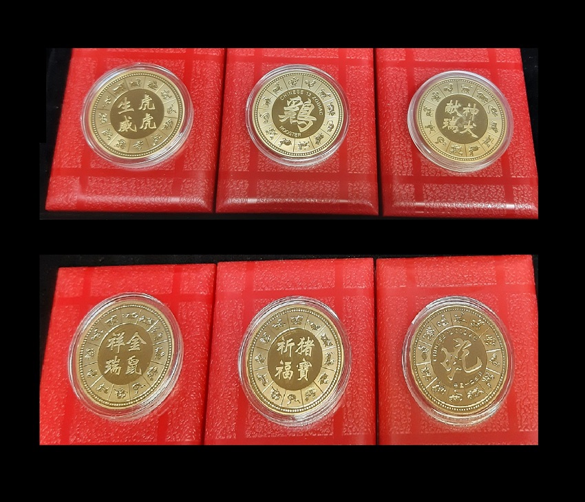 ND 中國12生肖鍍金紀念章(豬/蛇/虎/鼠/狗/雞) 品相如圖 編號:NIL(共6枚,5個盒)