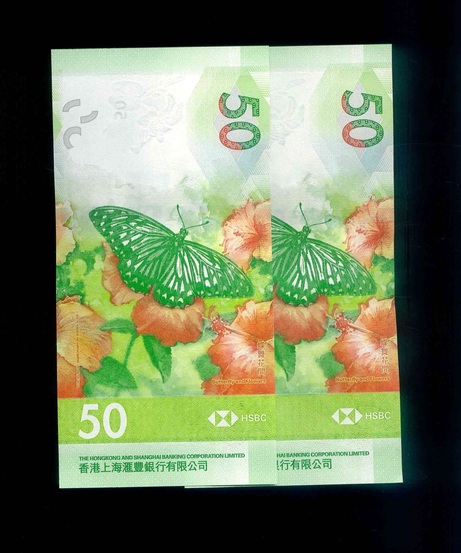 2023 香港上海滙豐銀行 $50 UNC 編號:FE449444…(共2張,含豹子/獅子號,頂級雪白)
