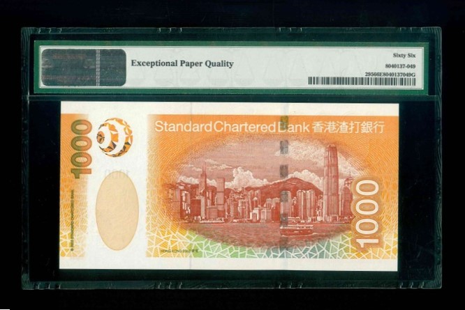 2003 香港渣打銀行 $1000 PMG 66 EPQ 編號:AA972822(頭版系列,頂級雪白)