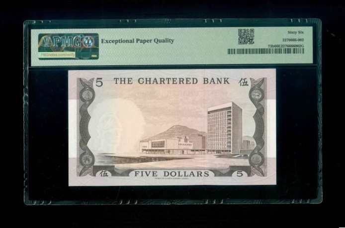 1975ND 香港渣打銀行 $5 PMG 66 EPQ 編號:Q587351(頂級雪白)