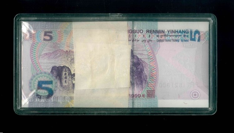 1999 中國人民銀行 伍圓 UNC 編號:PF11521701…(一刀,少有99年版,頂級雪白)