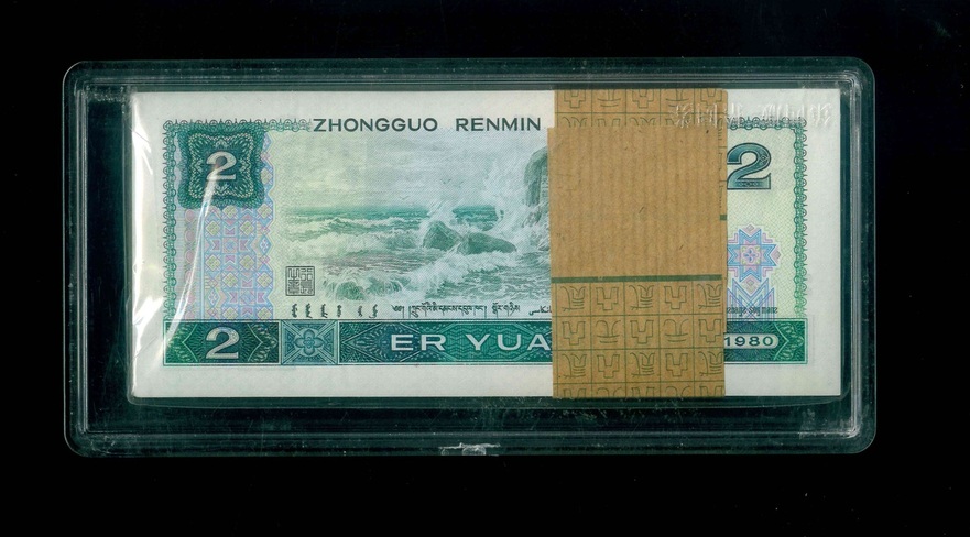 1980 中國人民銀行 2圓 UNC 編號:IW98653701…(標準百連,頂級雪白)