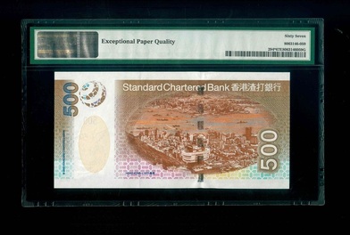 2003 香港渣打銀行 $500 PMG 67 EPQ 編號:ZZ256518(補版系列,頂級雪白)