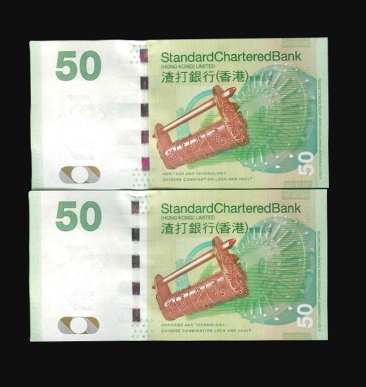 2010 香港渣打銀行 $50 UNC 編號:AA533018/28(共2張,頭版8尾)