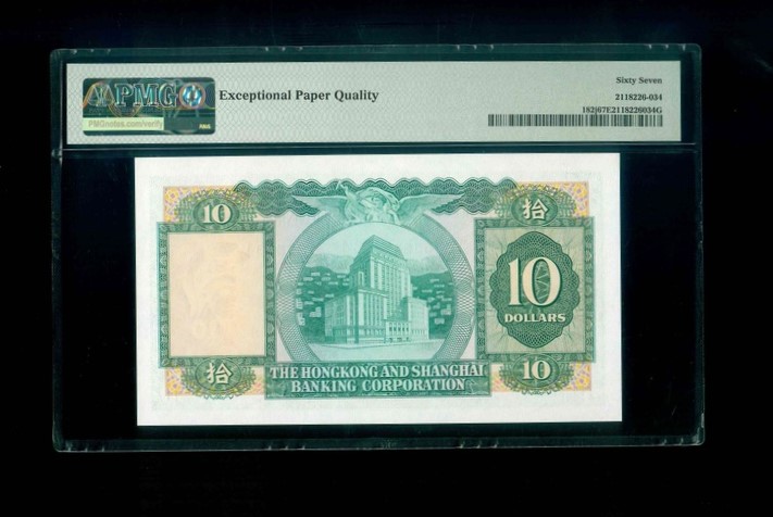 1983 香港上海滙豐銀行 $10 PMG 67 EPQ 編號:H/47 845534(頂級雪白)