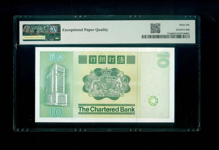 1980 香港渣打銀行 $10 PMG 66 EPQ 編號:A882449(頂級雪白)