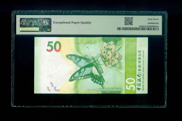 2021 香港中國銀行 $50 PMG 67 EPQ 編號:BH110101(二進制,頂級雪白)