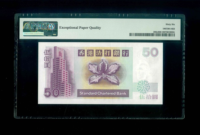 1999 香港渣打銀行 $50 PMG 66 EPQ 編號:Y326223(頂級雪白)