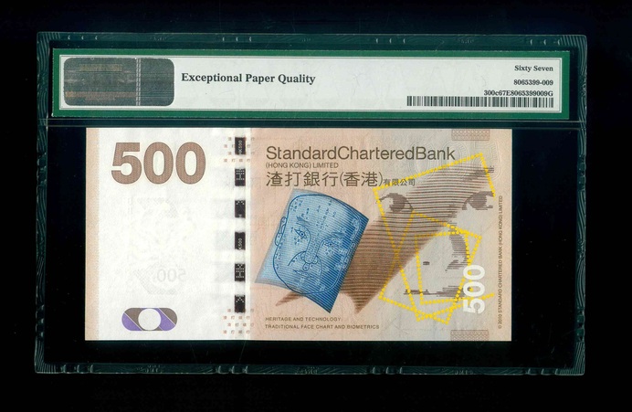 2013 香港渣打銀行 $500 PMG 67 EPQ 編號:BB274812(頂級雪白)