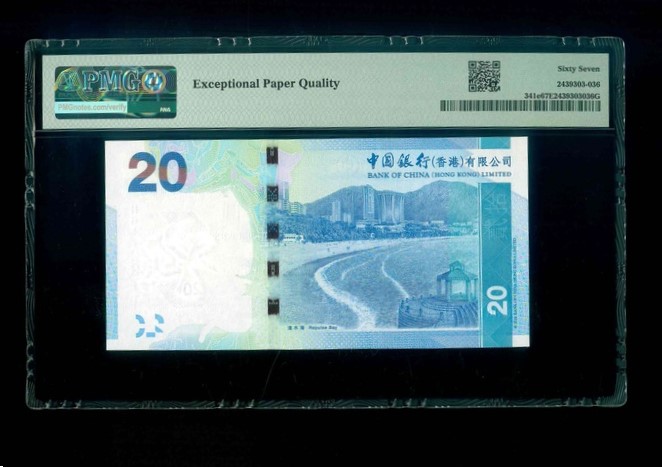 2015 香港中國銀行 $20 PMG 67 EPQ 編號:HG112211(三對子,頂級雪白)