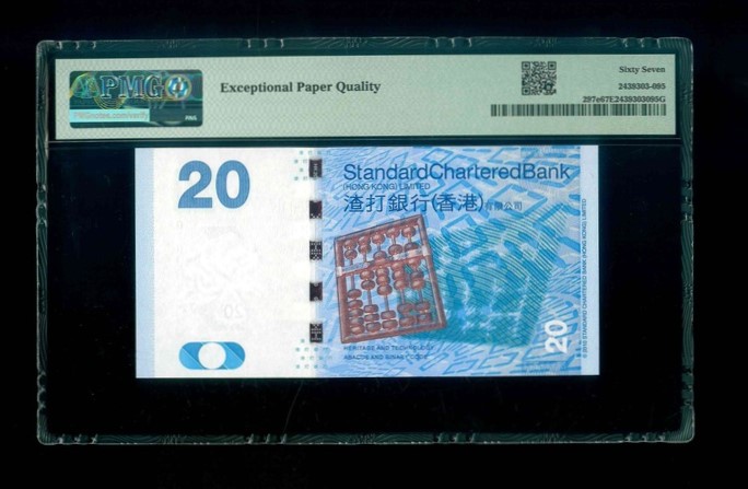 2016 香港渣打銀行 $20 PMG 67 EPQ 編號:GZ008883(頂級雪白)