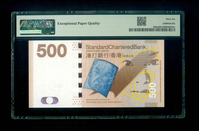 2010 香港渣打銀行 $500 PMG 66 EPQ 編號:AA785123(頭版系列,頂級雪白)