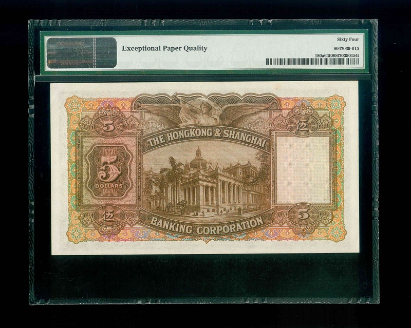 1954 香港上海滙豐銀行 $5 PMG 64 EPQ 編號:D/H 446777(豹子號,紙胆系列)