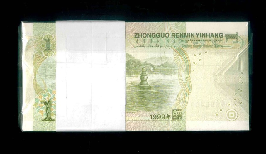 1999 中國人民銀行 $1 編號:NN99886301-400(百連號,頂級雪白)