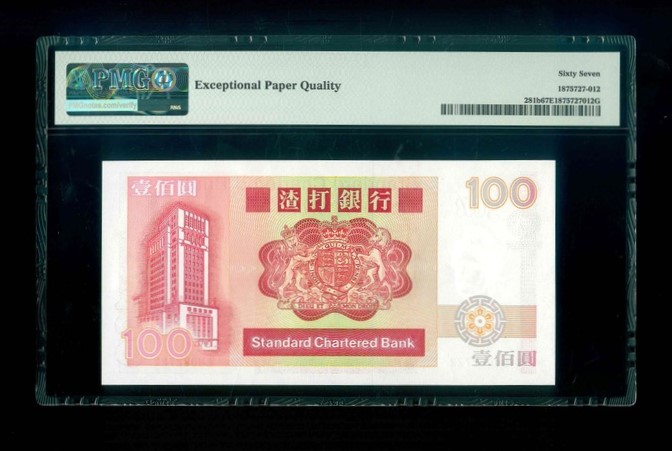 1989 香港渣打銀行 $100 PMG 67 EPQ 編號:BU062722(頂級雪白)