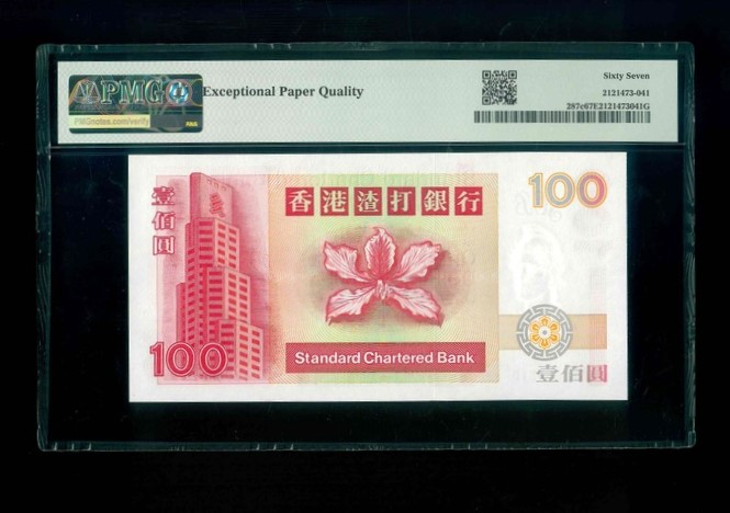 1999 香港渣打銀行 $100 PMG 67 EPQ 編號:FF968316(頂級雪白)