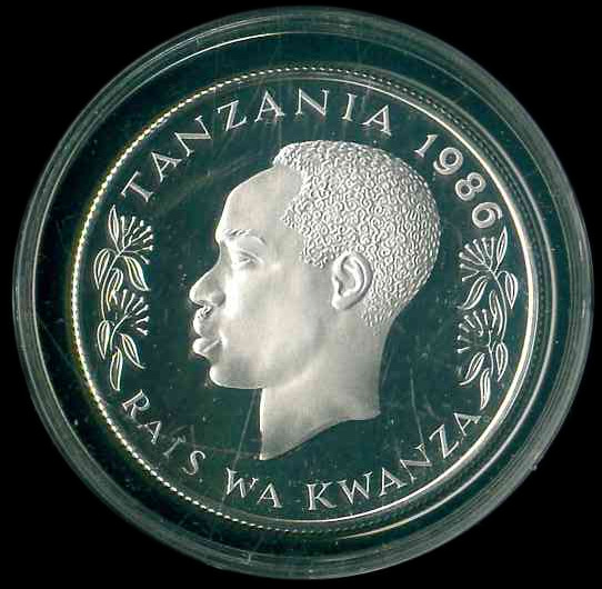 1986 坦尚尼亞銀幣 100 Shillings (野生動物保護系列-大象母子 .925) 品相如圖 編號:NIL