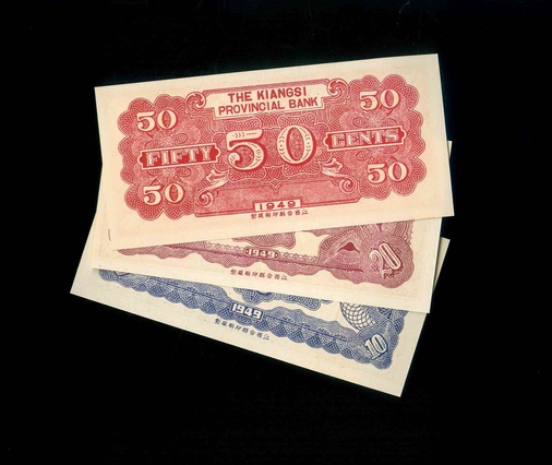 1949 中華民國38年江西省銀行輔幣劵 壹角 2角 伍角銀元 編號:017263…(共3張)