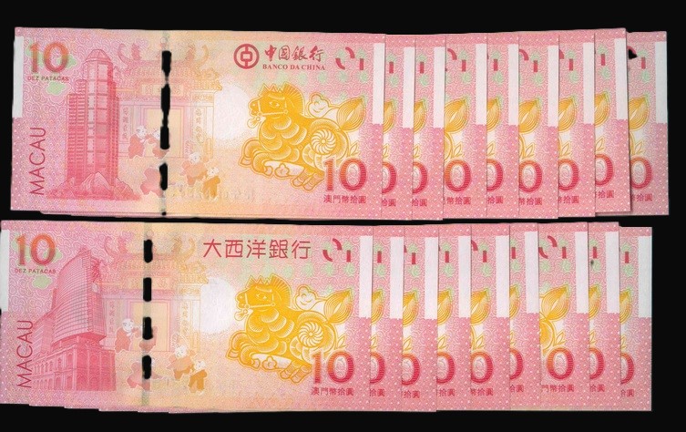 2014 澳門中國/大西洋銀行馬年賀年鈔 10 Patacas 編號:02692371-79(共18張,2組連號)