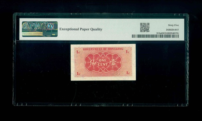 1940-41ND 香港政府 壹仙 PMG 65 EPQ 編號:3137436