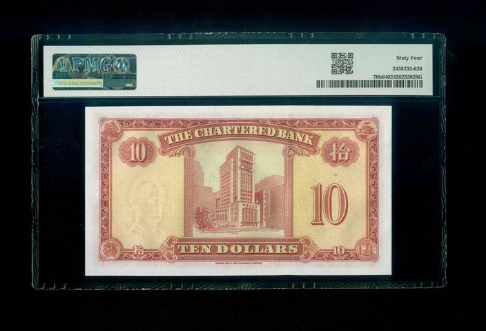 1962ND 香港渣打銀行 $10 PMG 64 編號:T/G 8190196