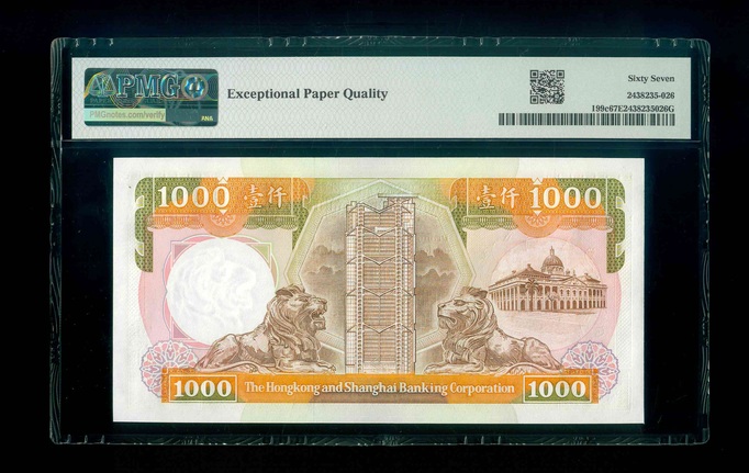 1991 香港上海滙豐銀行 $1000 PMG 67 EPQ 編號:BY103397