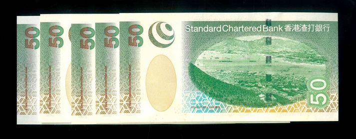 2003 香港渣打銀行 $50 UNC 編號:AA311198…(共5張,頭版含8尾,頂級雪白)