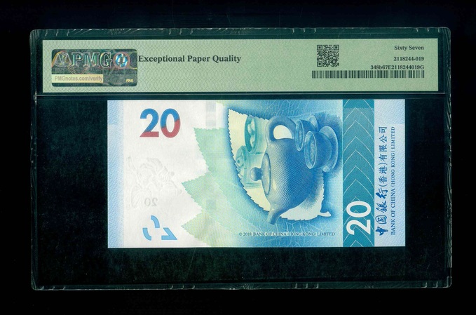 2021 香港中國銀行 $20 PMG 67 EPQ 編號:DJ599999(老虎號,頂級雪白)