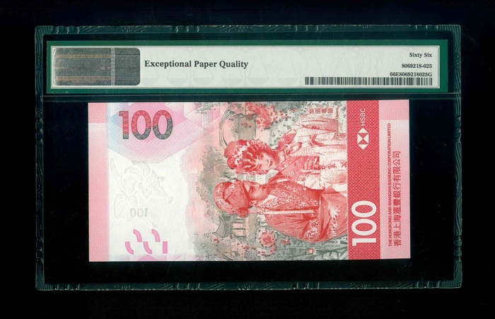 2018 香港上海滙豐銀行 $100 PMG 66 EPQ 編號:AC446644(雷達三對子,頂級雪白)