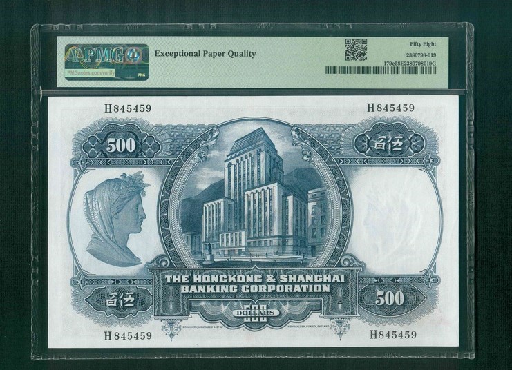 1968 香港上海滙豐銀行 $500 PMG 58 EPQ 編號:H845459