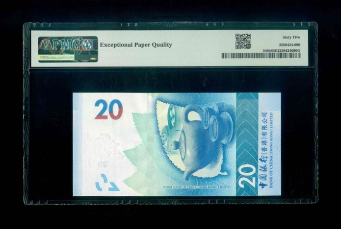 2021 香港中國銀行 $20 PMG 65 EPQ 編號:DE000188(頂級雪白)