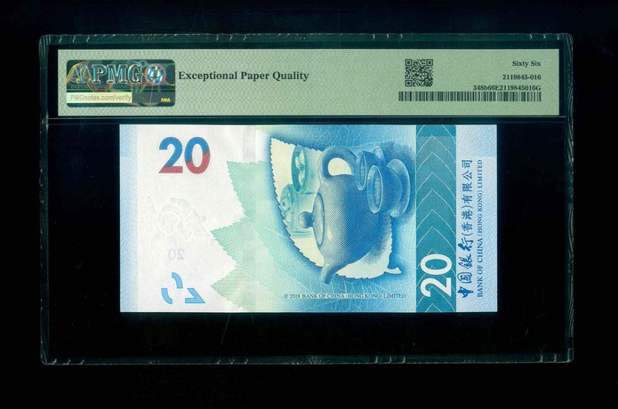 2021 香港中國銀行 $20 PMG 66 EPQ 編號:DC000128(頂級雪白)