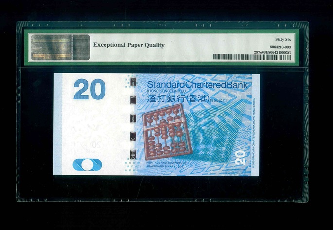 2016 香港渣打銀行 $20 PMG 66 EPQ 編號:HA110100(二進制,頂級雪白)