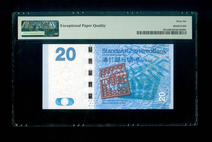 2016 香港渣打銀行 $20 PMG 66 EPQ 編號:GS891198(雷達號,頂級雪白)