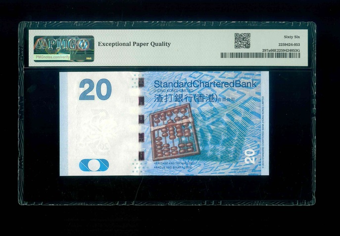 2010 香港渣打銀行 $20 PMG 66 EPQ 編號:AS117888(豹子號,頂級雪白)