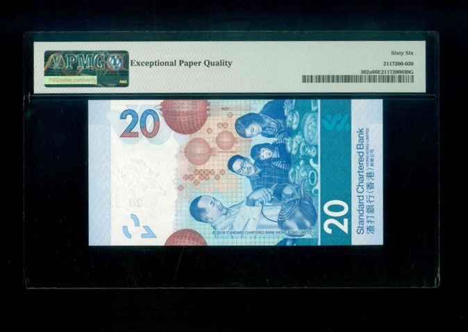 2018 香港渣打銀行 $20 PMG 66 EPQ 編號:AZ010100(二進制,頂級雪白)