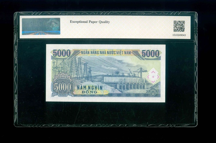 1991 越南 5000 Dong GBCA 66 EPQ 編號:HF 9981003(頂級雪白)